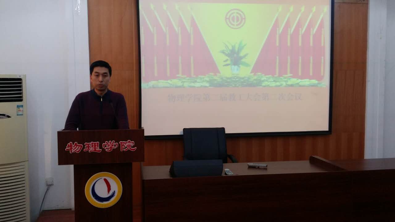 12月28日下午,物理学院第二届教职工大会第二次会议在崇山校区理贤楼物理学院学术报告厅召开。