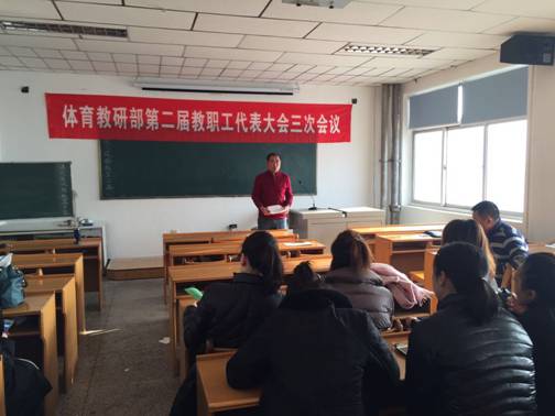 体育教研部第二届教职工代表大会三次会议于2016年12月28日上午在崇山校区蕙星楼719室召开。会议由体育教研部直属党支部书记郑鸿同志主持。